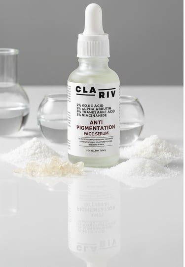 Discover how CLARIV Anti Pigmentation Serum uses 2% Kojic Acid, 2% Alpha Arbutin, 3% Tranexamic Acid, and 5% Niacinamide to target stubborn Indian pigmentation, fade dark spots, and even skin tone for clearer, brighter skin.