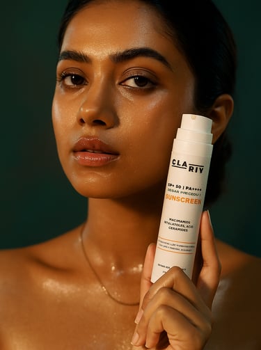 For an Indian-made, dermatologist-tested, and budget-friendly choice, try CLARIV Mineral Sunscreen SPF 50 PA++++ — the perfect blend of protection, hydration, and comfort.