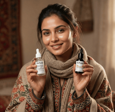 Apply 3–4 drops of CLARIV Vitamin C Serum to damp skin. Vitamin C adds antioxidant protection, brightens winter-dulled skin and supports collagen — helping skin look fresher despite cold-induced dullness. CLARIV’s formula with stable Ethyl Ascorbic Acid, Hyaluronic Acid and Ferulic Acid is lightweight and suitable under moisturizers.