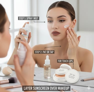 Here’s the tricky part — sunscreen needs reapplication every 3–4 hours. But no one wants to ruin their makeup mid-day.