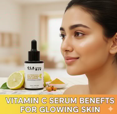 In this blog, we’ll explore how Vitamin C works, why your skin needs it daily, and how CLARIV’s 10% Vitamin C Serum makes glow achievable for everyone — even under ₹350.