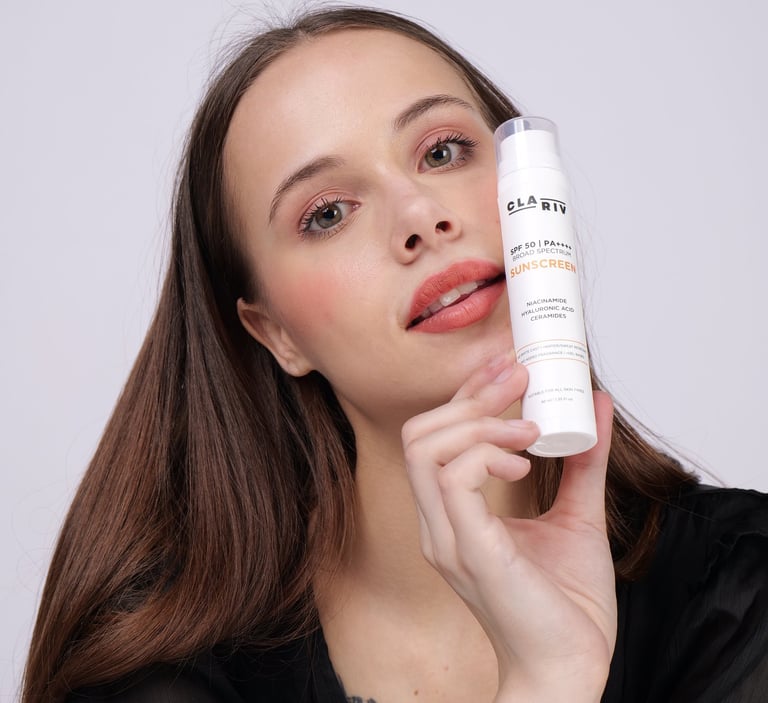 CLARIV Sunscreen offers a no white-cast finish, making it suitable for everyday wear — even under makeup.